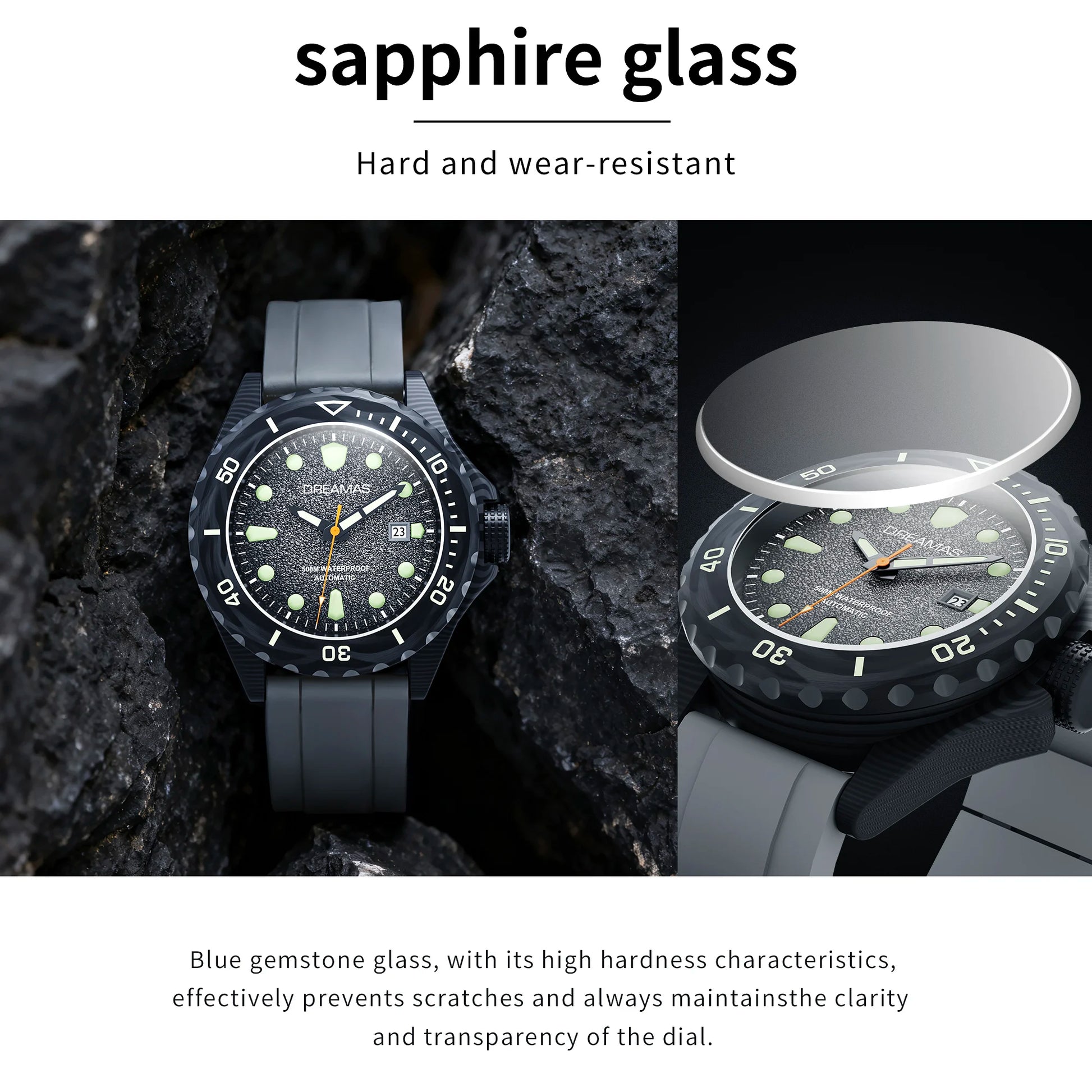 4,Watch Crystal: The sapphire glass crystal is used, with a Mohs hardness of 9, second only to diamond. It is clear and highly scratch-resistant, effectively protecting the watch face from scratches.